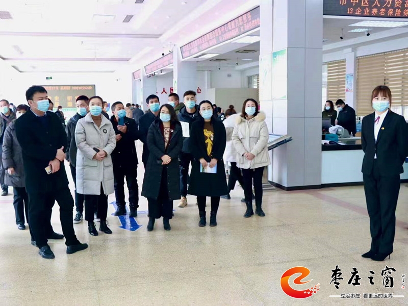 座談結(jié)束后,永城市考察組一行首先參觀了市中區(qū)醫(yī)保經(jīng)辦服務(wù)大廳,全方位感受市中優(yōu)質(zhì)醫(yī)保經(jīng)辦服務(wù)。在工作人員熱情的講解與引導(dǎo)下,一行人逐步參觀,詳細(xì)了解窗口服務(wù)區(qū)、咨詢叫號(hào)區(qū)、便民服務(wù)區(qū)、自助服務(wù)區(qū)和休息區(qū)具體功能與硬件設(shè)置,重點(diǎn)聽取了市中區(qū)“綜合柜員制”窗口經(jīng)辦服務(wù)模式,了解其內(nèi)部人員設(shè)置、經(jīng)辦流程運(yùn)行方式等工作機(jī)制情況。