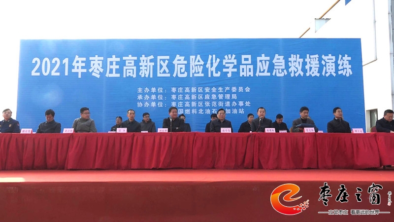 11月30日上午,棗莊高新區(qū)在張范街道北油石化加油站舉行2021年危險化學(xué)品應(yīng)急救援演練。