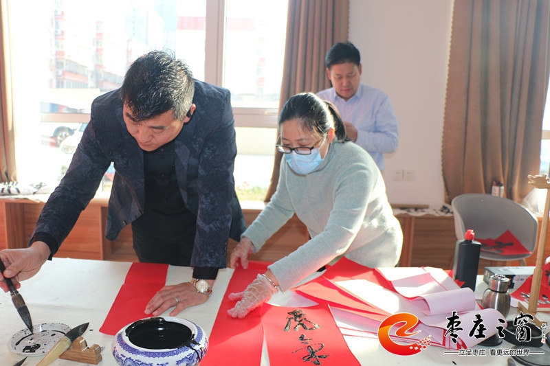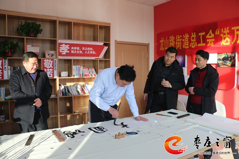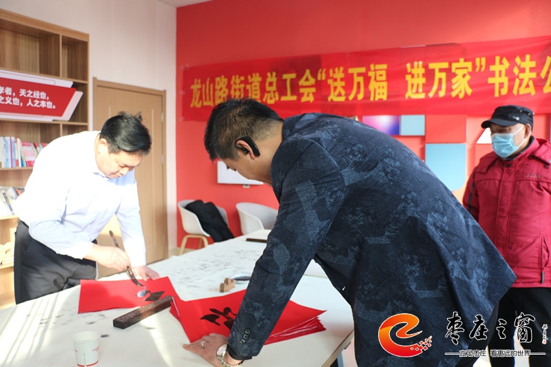 “給大家送‘!!”伴隨著新年的祝福,龍山路街道總工會(huì)的工作人員們正將書(shū)法家們寫(xiě)好的一張張福字雙手遞給在場(chǎng)的職工。1月16日上午,市中區(qū)龍山路街道總工會(huì)在公勝街紅色驛站組織開(kāi)展“送萬(wàn)福 進(jìn)萬(wàn)家”書(shū)法公益活動(dòng),邀請(qǐng)省書(shū)法家協(xié)會(huì)的4位書(shū)法家代表,在活動(dòng)現(xiàn)場(chǎng)手寫(xiě)福字和對(duì)聯(lián),為廣大職工群眾以及轄區(qū)企業(yè)送去新春的祝福和問(wèn)候。