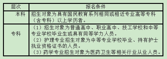 按照國家開放大學(xué)規(guī)定,2024年春季各專業(yè)報名學(xué)生年齡需年滿17周歲(2007年3月31日(含)前出生),并按所報考層次分別滿足下列條件: