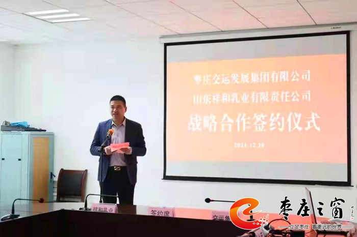 時近元旦,一元復(fù)始,萬象更新。12月20下午,山東祥和乳業(yè)有限責(zé)任公司與棗莊交運(yùn)集團(tuán)戰(zhàn)略合作框架協(xié)議簽約儀式在棗莊交運(yùn)集團(tuán)三樓會議室舉行。市國資委黨委委員、副主任孫晉卓,祥和乳業(yè)董事長闞久剛,棗莊交運(yùn)集團(tuán)黨委書記、董事長王賀龍出席簽約儀式并分別做了發(fā)言。