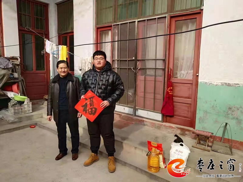 2022年1月28日,薛城區(qū)政協(xié)副主席、工商聯(lián)主席姚磊帶領(lǐng)工商聯(lián)領(lǐng)導(dǎo)班子成員分別到周營(yíng)、鄒塢、常莊等鎮(zhèn)村開(kāi)展春節(jié)前“送溫暖”走訪(fǎng)慰問(wèn)7家?guī)头鰬?hù)活動(dòng),為他們送去愛(ài)心企業(yè)家王興亮選購(gòu)的米、油、面。姚磊還專(zhuān)門(mén)送了自己書(shū)寫(xiě)的《福》字春聯(lián),并向幫扶戶(hù)送上節(jié)日問(wèn)候和新春祝福。